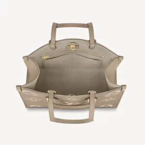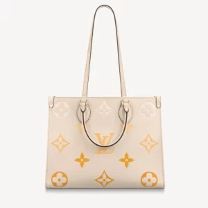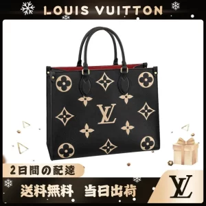 解説: インパクトあるデザインと機能性を兼ね備えた「オンザゴー GM」。ジャイアントモノグラム キャンバスで仕立て、両サイドとハンドルにモノグラムリバース パターンをあしらうことで、異なる色とスケール感がスタイリッシュな…