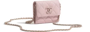 グレインエンボス加工の光沢のあるカーフスキンとゴールデンメタル 10.3×15×4cm