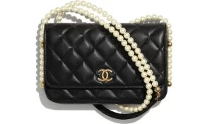 カーフスキン、人工真珠、ゴールド 12.3×19.2×3.5cm