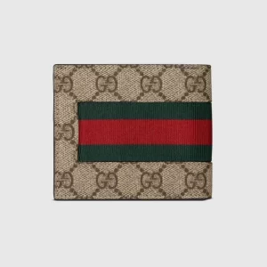 製品詳細 スタイル408827 KLQCN 8461 ウェブとビー(ハチ) ディテールが印象的なGGスプリーム キャンバス素材のバイフォルド ウォレット。 オンライン限定 ベージュ/エボニー GGスプリーム キャンバス(…