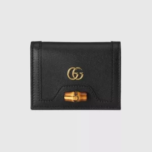 スタイル658244 17Q0T 1000 グッチの歴史の中核となっているバンブー素材へのオマージュを表現したカードケースウォレット。バンブークロージャーがデザインのポイントです。 ブラックのスムースレザーで仕立て、ブラ…