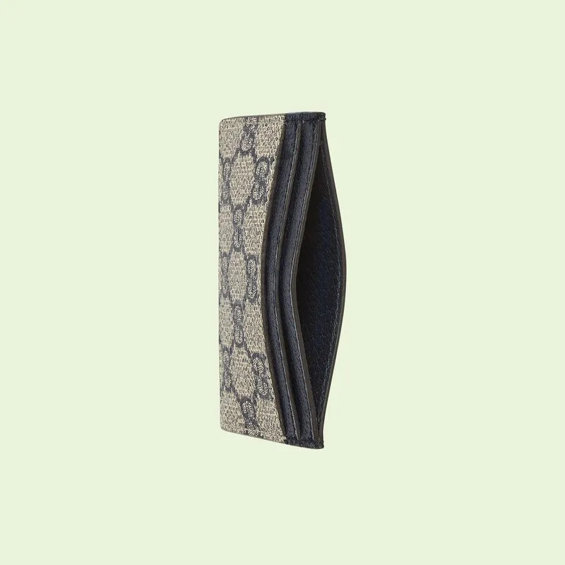 新しいファッションシリーズ「グッチラブマーチ」では、GG Supremeキャンバスが、素材の歴史的起源を継承し、ブルーとベージュのクラシックで時代を超越した組み合わせを発表しました。 キャンバス素材は環境への影響が少ないため、10年前からすべてのコレクションに登場し、ブランドの定番素材となっています。 クラシックなカラーウェイは、Ophidiaコレクションのこのスリムなカードホルダーに独特の魅力を与えます。