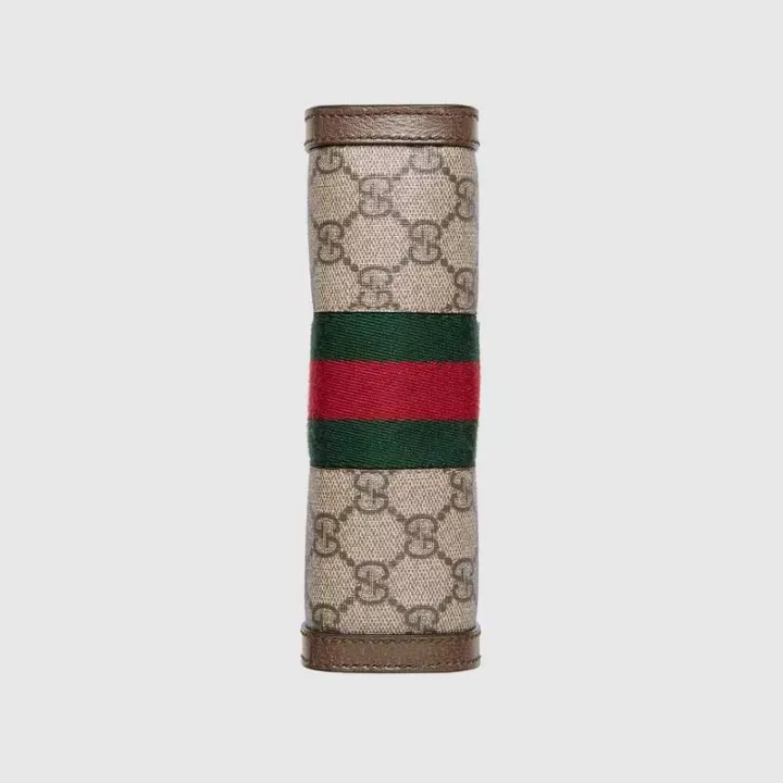 ベージュ/エボニーGGスプリームキャンバス、環境にやさしい素材、ブラウンレザートリムで装飾