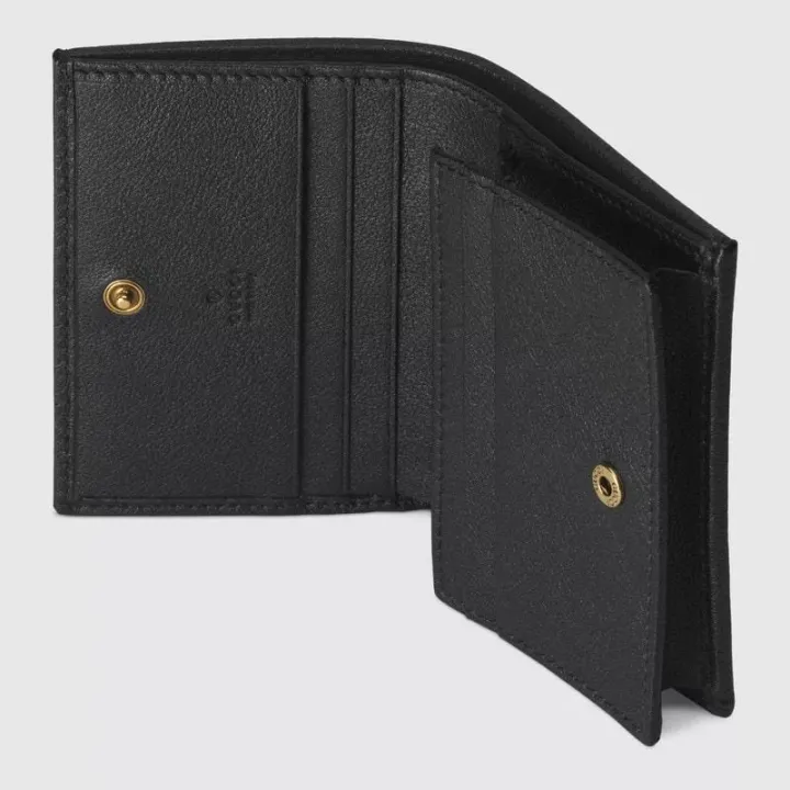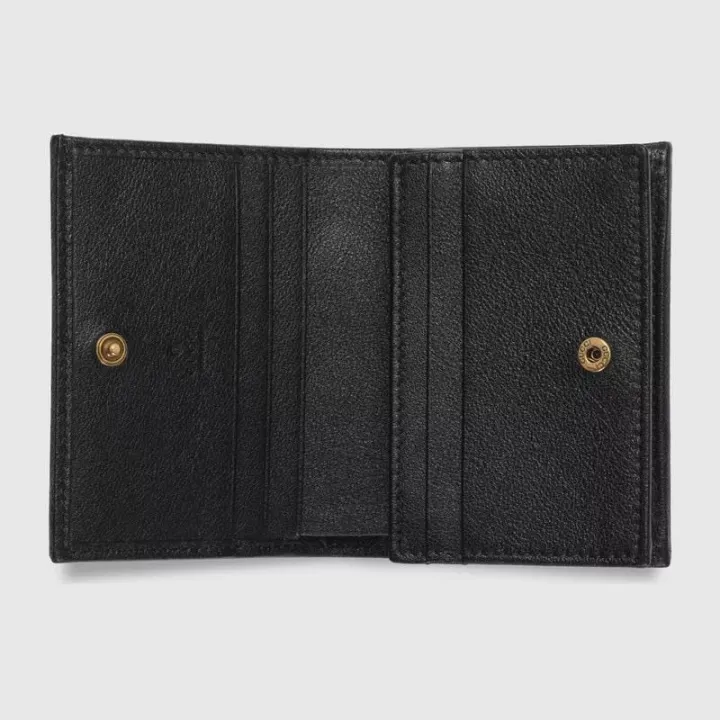 グッチの歴史の中核となっているバンブー素材へのオマージュを表現したカードケースウォレット。バンブークロージャーがデザインのポイントです。 ブラックのスムースレザーで仕立て、ブランド創設者グッチオグッチのイニシャルを表すダブルGのハードウェアをあしらいました。
