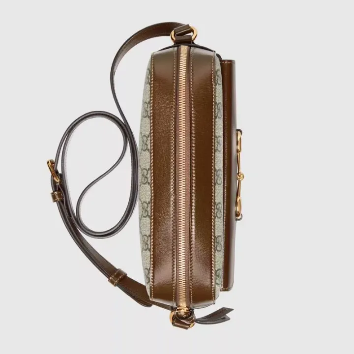ホースビットは、ブランドのシンボルの1つになっています。そのユニークなダブルループとロングストリップのデザインは、グッチの馬術の起源に端を発し、今ではブランドのデザイン遺産の1つになっています。エピローグシリーズでは、グッチホースビット1955シリーズは、60年以上前のブランド設立のクラシックなディテールとモダンファッションのエッセンスを組み合わせて、特別な調節可能なショルダーストラップで装飾されたベージュとエボニーのGGスプリームキャンバスで作られたこの小さなショルダーバッグを作成しますデザインはショルダーと斜めの間で自由に切り替えることができます。