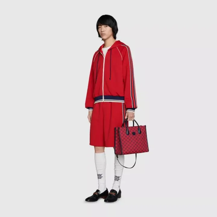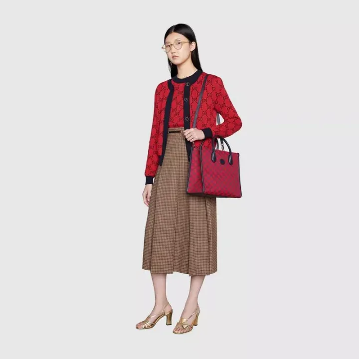 クラシックなダブルGパターンは、1930年代にブランドが使用し始めた象徴的な要素の1つです。ほぼ一世紀の開発の後、それはブランドが新しい表現を探求するためのインスピレーションを提供します。この赤と青の小さなキャンバストートバッグは、このパターンを鮮やかに再現しています。