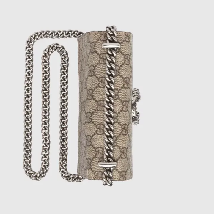 テクスチャード加工のダブルタイガーヘッドバックルを備えた構造化されたミニバッグ。スライディングチェーンバッグにはさまざまな持ち運び方法があり、肩と手で自由に切り替えることができます。