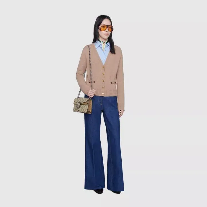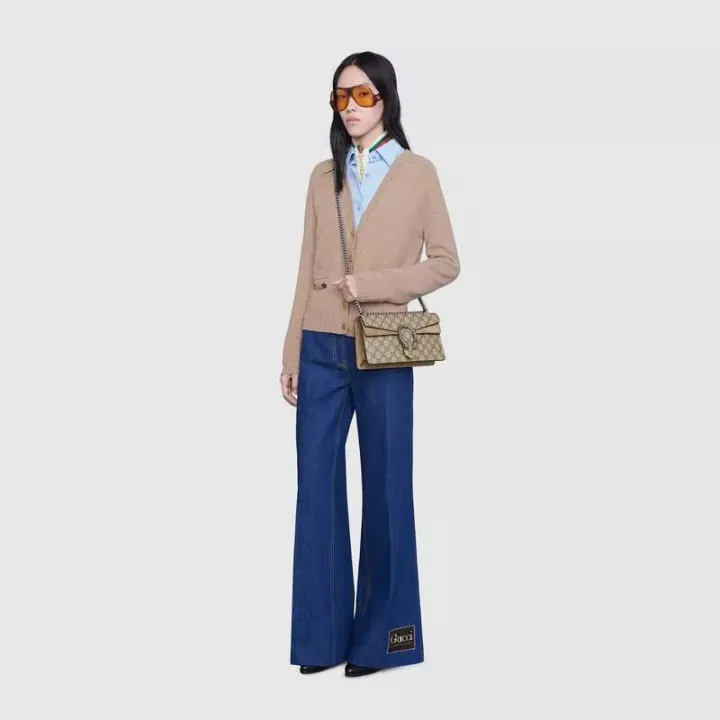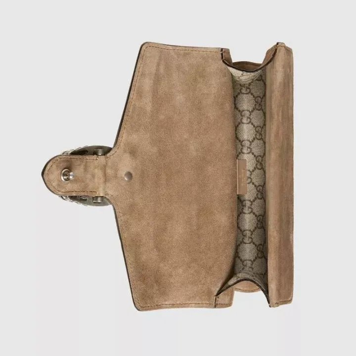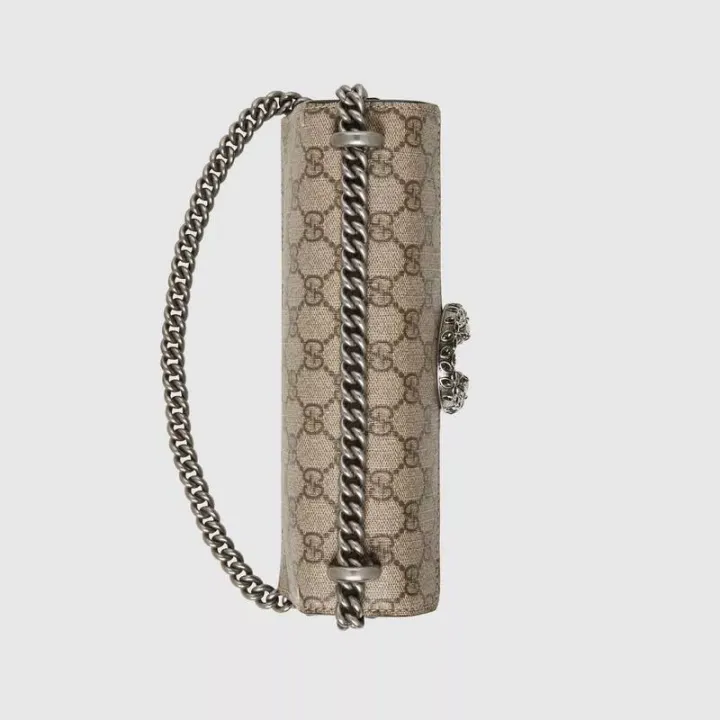 この小さなディオニュソスのショルダーバッグは、クラシックなGGパターンとトープスエードのパイピングのディテールで装飾されています。バッグは、ギリシャのワインディオニュソスの神にインスパイアされたブランドの象徴的なタイガーヘッドバックル要素で細心の注意を払って装飾されています。神話や伝説では、彼はゼウスから送られたタイガーでチグリス川を渡りました。光沢のあるクリスタルの装飾がバックルをより豪華にします。スライディングチェーンストラップは、ショルダーバッグ、クロスボディバッグ、ハンドバッグの間で自由に変換できるさまざまな持ち運び方法を作成します。