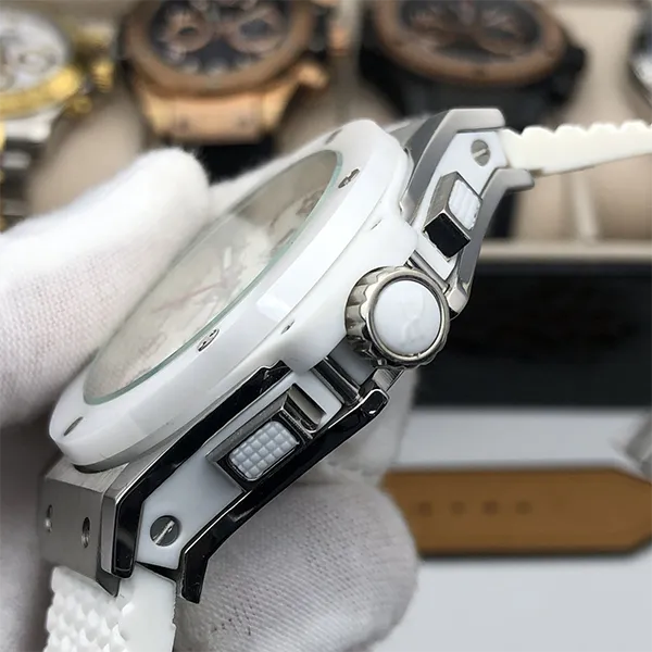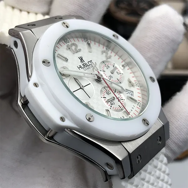 ベゼル:マイクロブラスト加工&ポリッシュ仕上げホワイトセラミック 6個のH型ブラックPVDチタニウム製ビス