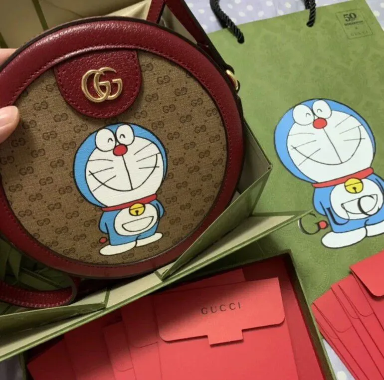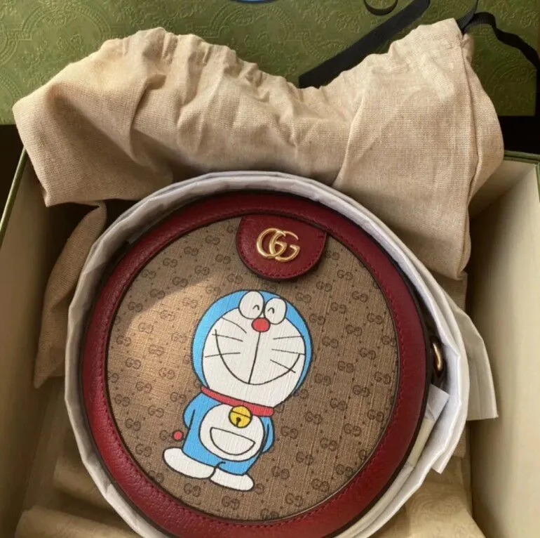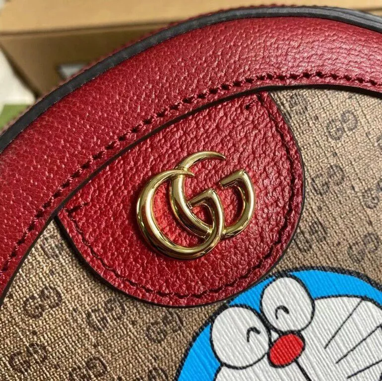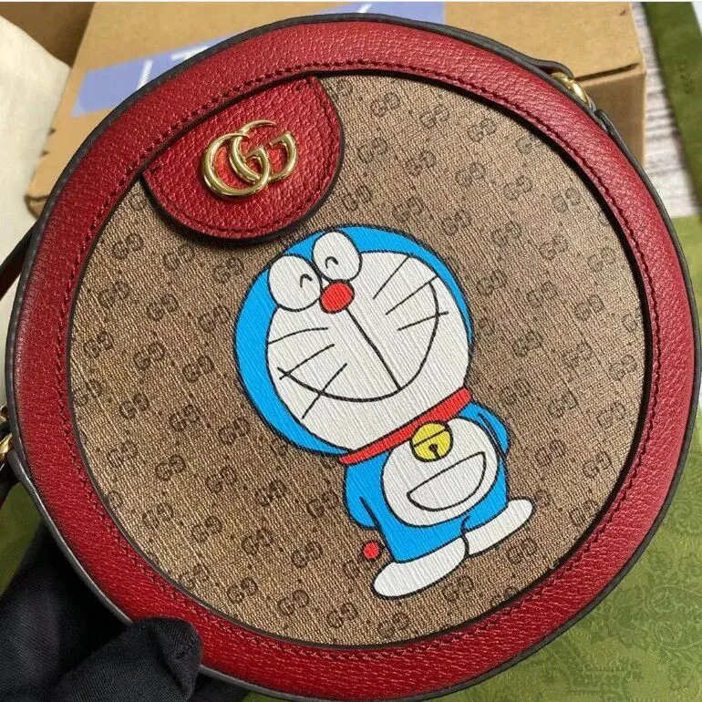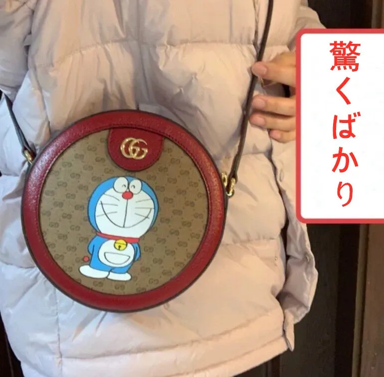 グッチとドラえもんのスペシャル コラボレーションによる、スプリーム キャンバスのショルダーバッグ。ネコ型ロボットであるドラえもんは、1970年に発表されて以来、50年以上にわたって愛され続けている『ドラえもん』(原作:藤子F不二雄)の主人公で、のび太の未来を救うために2112年の世界からやってきました。