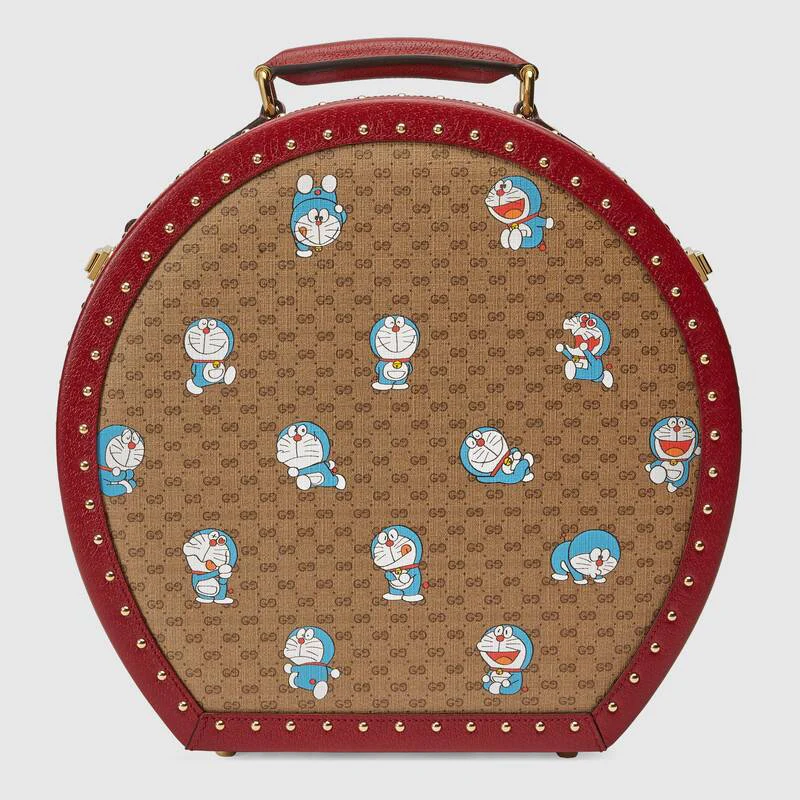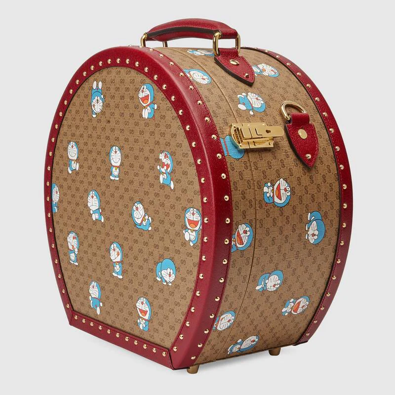 グッチとドラえもんのスペシャル コラボレーションによる、ミニ GGスプリーム キャンバスのスモール ハットケース。ネコ型ロボットであるドラえもんは、1970年に発表されて以来、50年以上にわたって愛され続けている『ドラえもん』(原作:藤子F不二雄)の主人公で、のび太の未来を救うために2112年の世界からやってきました。