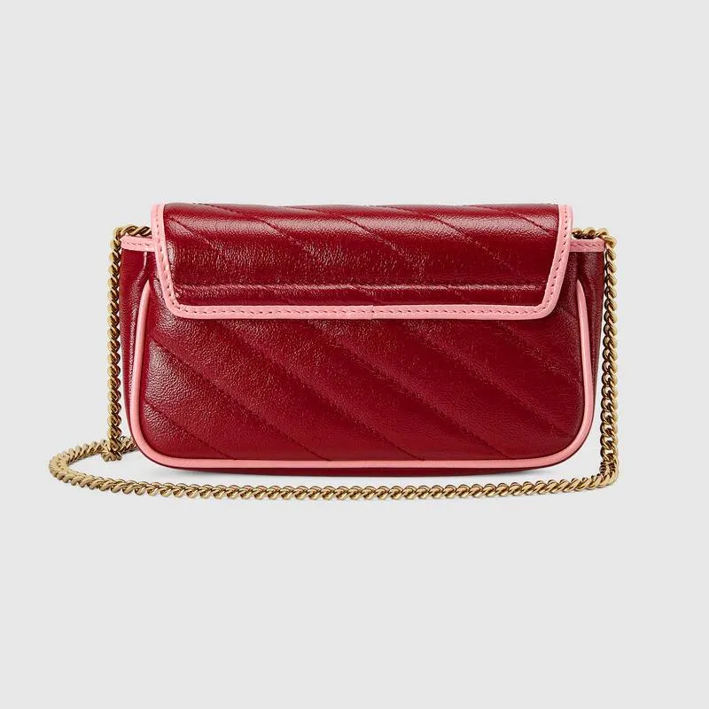 このGGマーモントシリーズのスーパーミニハンドバッグは、赤とピンクのキルティングレザーでできており、見事なコントラストの美しさを示しています。 ブランドグッチの最愛の人は、貴重な宝石に触発された一連の明るい色調のデザインを選択し、インフィニットオーバーチュアシリーズのさまざまな優れたスタイルを差し引いています。 エナメルのディテールが施された象徴的なダブルGアクセサリーは、デザイン全体の魅力を高めます。
