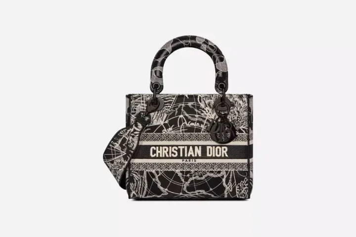 クラシックなエレガンスとメゾンのモダニティを併せ持つ「Lady D-Lite (レディ D-ライト)」バッグ。ブラックボディの全面にホワイトの“Dior Around the World”モチーフの刺繍を施し、光沢のあるマットな糸のコントラストで遊び心をプラスしました。フロントに“CHRISTIAN DIOR”シグネチャーをあしらい、光沢のあるブラックメタルで新たに登場したボリューム感のある“D.I.O.R.”チャームを添えたデザイン。魅力的なシルエットをより一層引き立てます。幅広でリバーシブルの刺繍入りショルダーストラップは取り外すことができ、手提げスタイルはもちろん、ショルダーバッグやクロスボディバッグとしてもお使いいただけます。