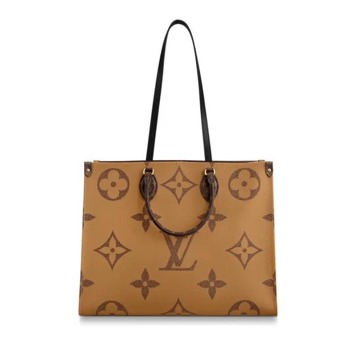 インパクトあるデザインと機能性を兼ね備えた「オンザゴー GM」。ジャイアントモノグラム キャンバスで仕立て、両サイドとハンドルにモノグラムリバース パターンをあしらうことで、異なる色とスケール感がスタイリッシュなコントラストを描く特別な1品に仕上がりました。収納力に優れ、日常使いに最適なバッグです。