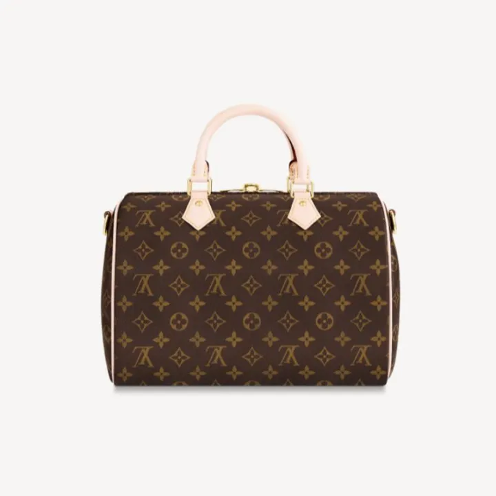 モノグラムキャンバスで仕上げた「スピーディバンドリエール 30」。日常生活にぴったりのシティバッグです。「スピーディ」の前身であるバッグ「エクスプレス」は、1930年代の旅人のために作られたもの。その名は加速化が著しかった当時の移動手段にヒントを得ています。一目でそれと分かる独特のシルエット、ロール仕上げのレザーハンドル、刻印を施したパドロック、取外し可能なストラップなど、すべてのディテールが「スピーディ」を特別な存在にしています。