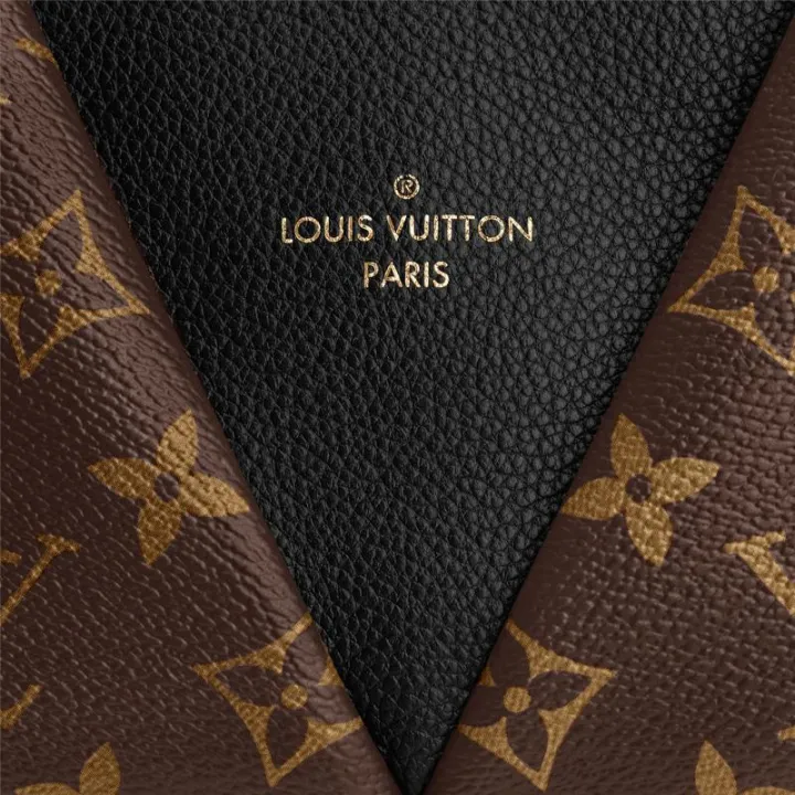 「V」から着想を得て、モノグラムキャンバスに大ぶりの三角形のパネルをグレインレザーで施した「Vトート BB」。ゴールドカラーの金具とレザーのネームタグをあしらったバッグは、取外し可能なストラップ付きでハンドバッグやショルダーバッグとしてもお使いいただけます。