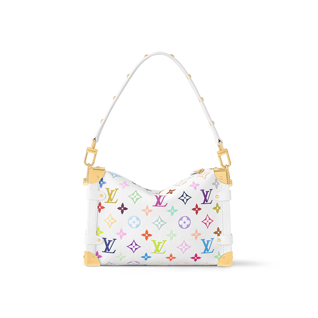 普段の装いにエスプリ溢れるステートメントを添えるアイコニックな「LV × TM サイドトランク MM」。「ルイ・ヴィトン × 村上隆」コレクションのリエディションに登場した、プレイフルな表情のモノグラム・モチーフが魅力です。メゾンのアーカイヴにあったラゲージにオマージュを捧げる長方形のシルエットをしなやかなカウハイドレザーで仕立て、ゴールドカラーの補強を施したコーナー部分とエンブレマティックなSロックスタイルの留め具をあしらいました。取外し可能なハンドルにはスタッズの装飾と多彩な持ち方を楽しめるストラップを配し、普段の必需品をたっぷり収納できる内装を備えています。