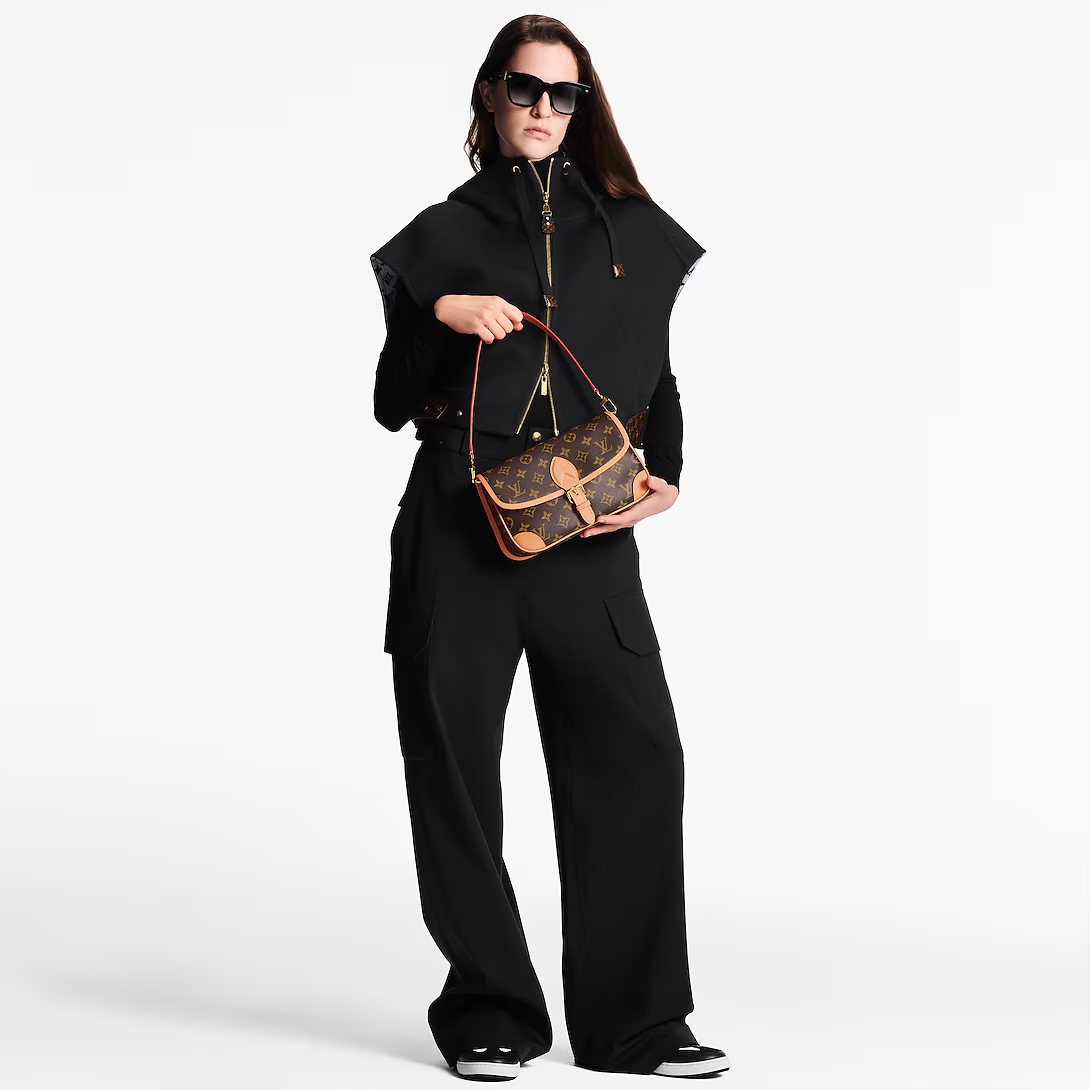 1990年代のクラシカルなモデルを再解釈して、モノグラム・キャンバスで仕上げたサッチェルバッグ「ディアヌ」。レザーのコーナー部分やアーカイヴから着想を得たバックルといったヴィンテージ風のディテールを、スマートなポケットと整理しやすい内装のモダンな機能と組み合わせました。エクスクルーシブな幅広のジャカード織りのストラップの片面には大胆な「Louis Vuitton」シグネチャーが、もう片面にはさりげないモノグラム・フラワー モチーフがあしらわれています。