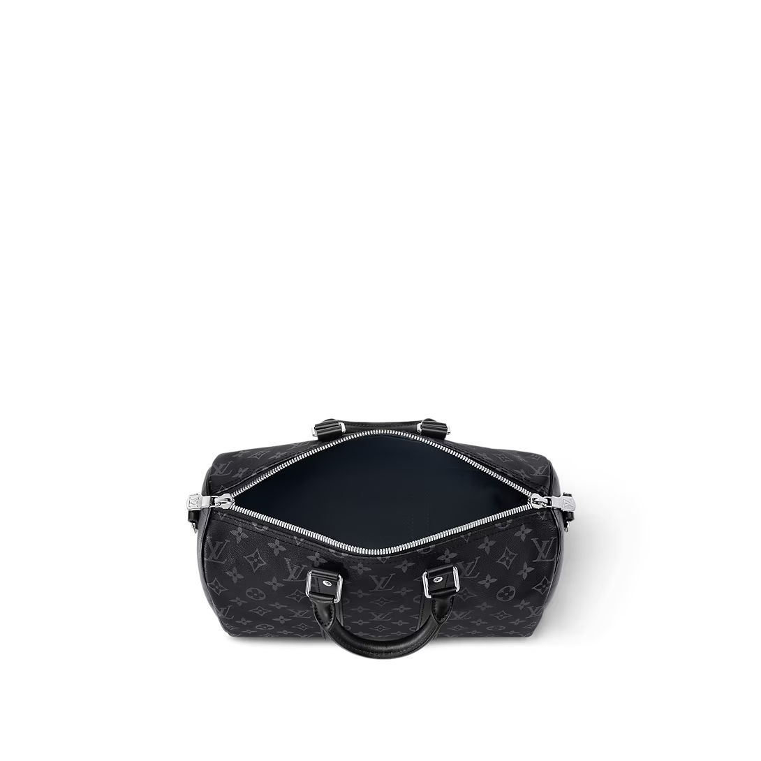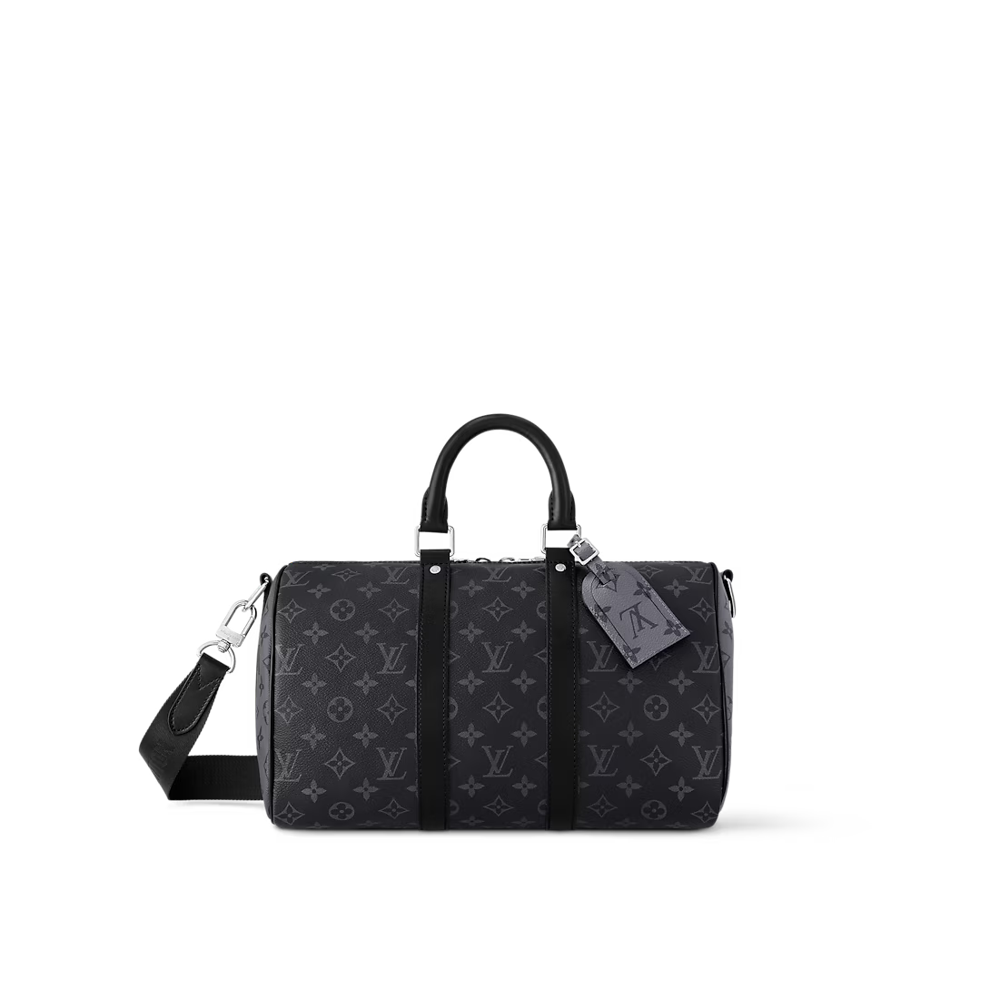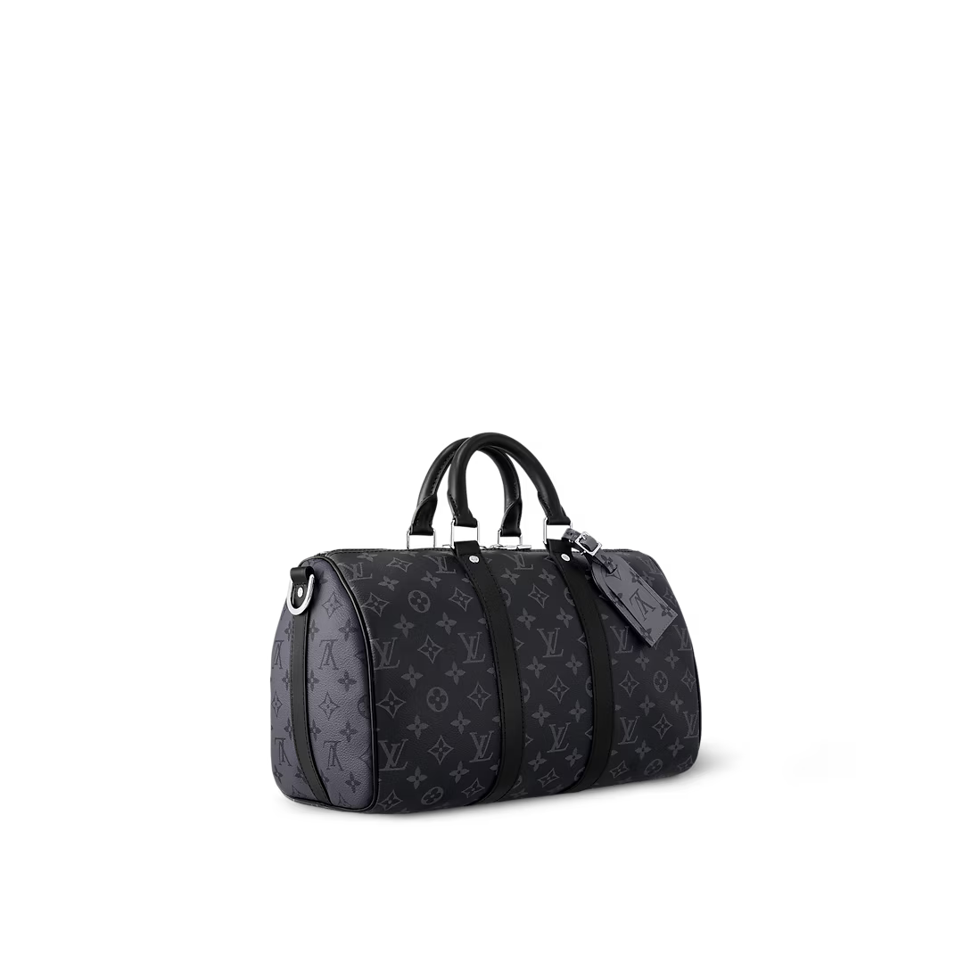 洗練された雰囲気をさりげなく演出する、モノグラム・エクリプス キャンバスを使用した「キーポル・バンドリエール 35」。ブラックレザー製のトップハンドルとサイドバンド、シルバーカラーのメタルパーツがタイムレスなデザインを引き立てます。ショルダーバッグとして快適にお楽しみいただける、取外し & 調節可能なストラップ付き。