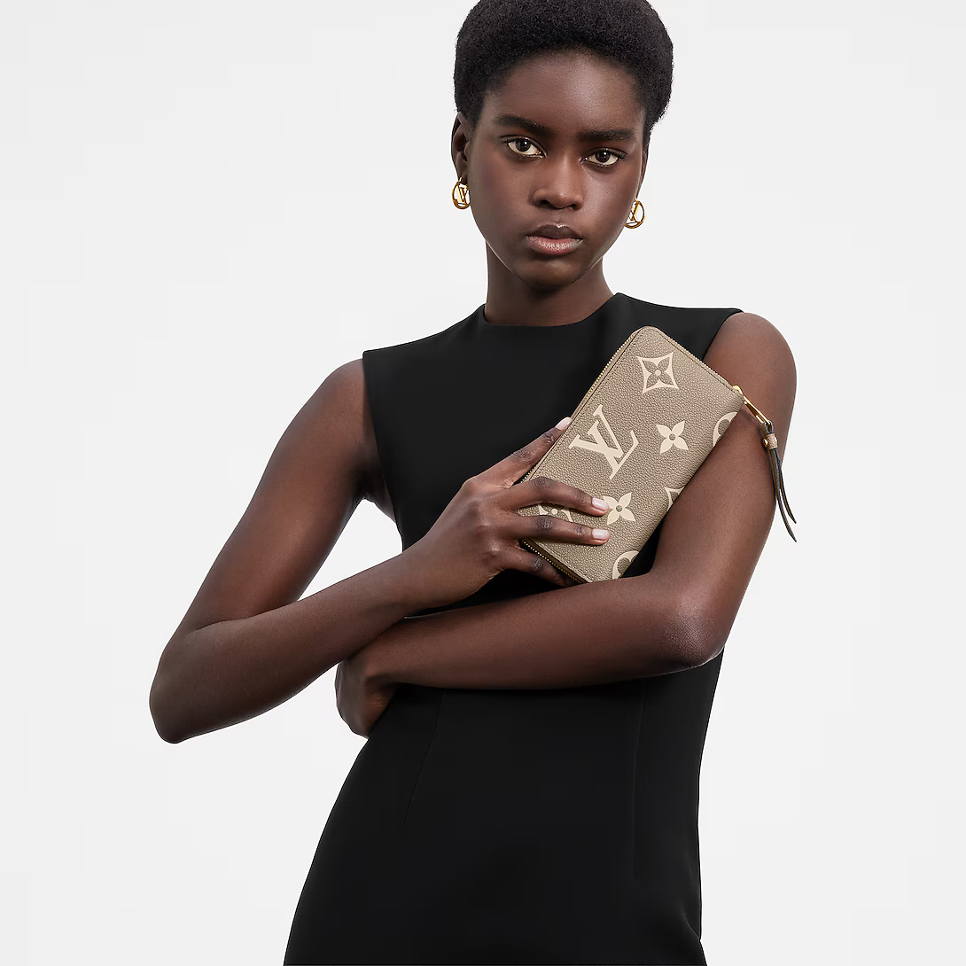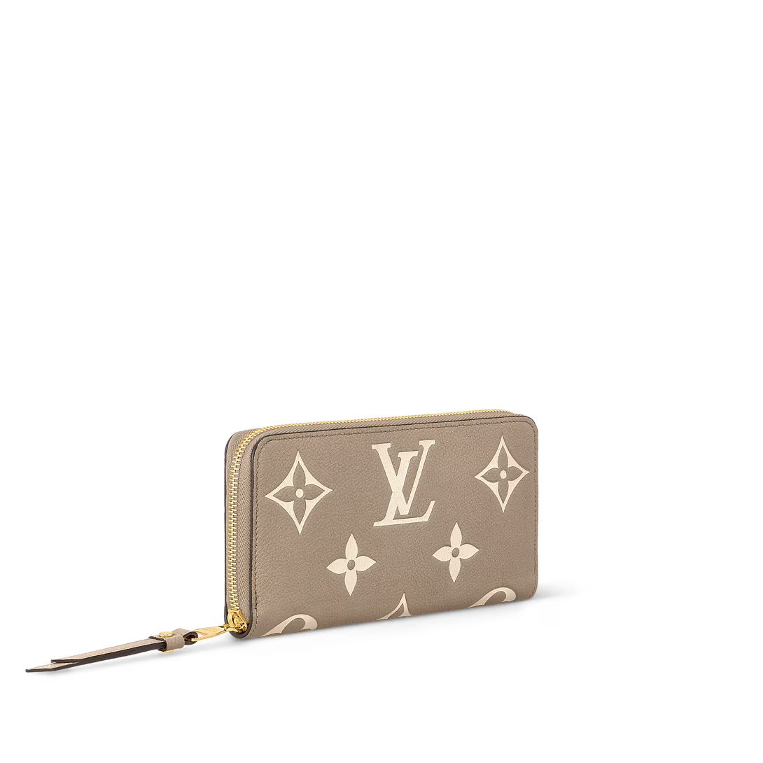 2色のモノグラム・アンプラント レザーで仕立てた「ジッピー・ウォレット」。カウハイドレザーにエンボス加工とプリントを施し、モノグラム・パターンをあしらいました。内ポケット、コンパートメント、カードスロットを備えた、中身をしっかり収納できるアイコニックなラウンドファスナー式の財布です。