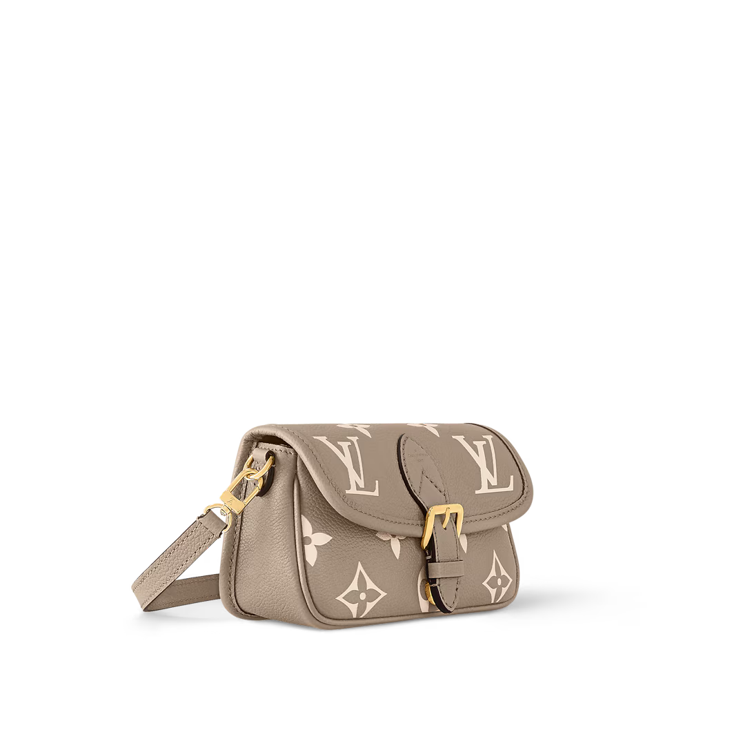 バイカラーのモノグラム・アンプラント レザーを使用し、メゾンを象徴する「ディアヌ」をミニチュアサイズに仕上げた「ナノ・ディアヌ」。丸みを帯びたフラップやパイピングを施したエッジ、ベルトスタイルのマグネットの留め具など、オリジナルデザインにおけるキーディテールを生かし精緻に仕立てました。取外し可能なハンドルと取外し & 調節可能なショルダーストラップで、さまざまな持ち方を楽しめます。