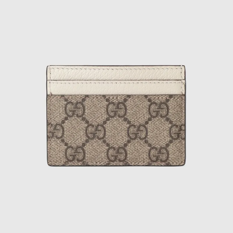 オフィディアコレクションは、レトロにインスパイアされたディテールとクラシックなブランド要素を備えた、グッチの「アリア-ファッションアリア」コレクションで再解釈されています。 アイコニックなダブルGのディテールとストライプのウェブを組み合わせたこのカードホルダーは、クラシックなフィット感でグッチブランドのルーツに敬意を表しています。 ベージュとエボニーのGGSupremeキャンバスにホワイトレザーのトリムをあしらい、モダンなアピールを実現。
