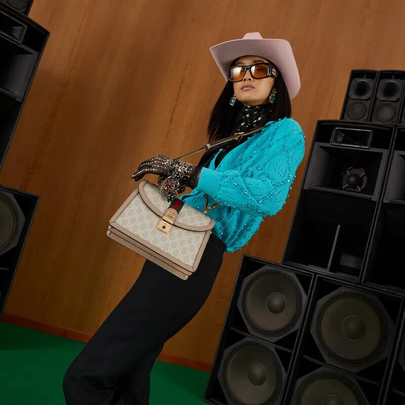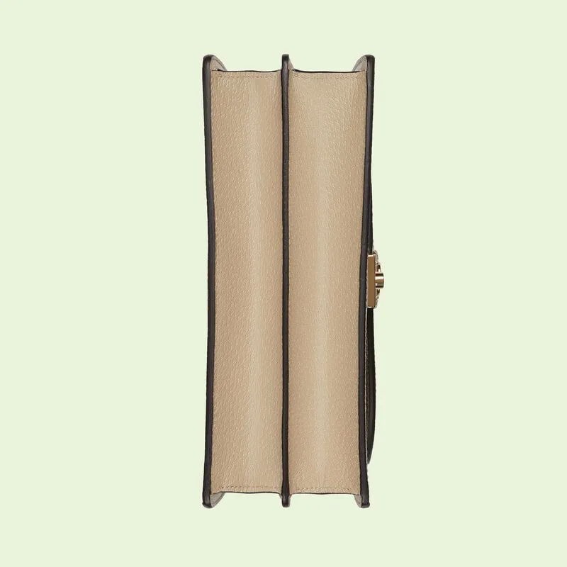 グッチの愛の行進は、感動的な物語を色で語っています。 GG Supremeキャンバスは、30年代のアーカイブデザインから着想を得た、ブランドのシグネチャーファブリックの1つです。 クラシックなベージュとエボニーのデザインは、ベージュと白のさわやかな組み合わせで再解釈され、ブランドの永続的なデザインの本質を伝えています。 このパターンは、この小さなオフィディアバッグの特徴的なハイライトにもなります。