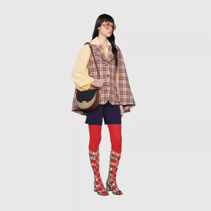 南京錠シリーズは、新しい三日月形のショルダーバッグを発売しました。 このショルダーバッグは、ブランドのクラシックなダブルG文字の織り交ぜパターンを備えたキャンバスでできており、独特の革のディテールとシリーズの象徴的なロック要素で装飾されています。