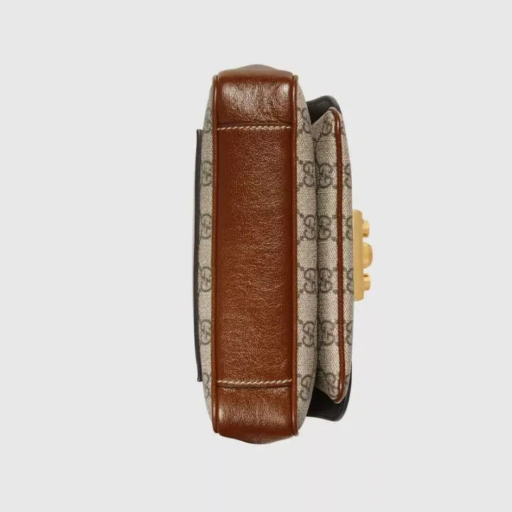 インフィニットオーバーチュアシリーズは、ブランドの象徴的なスタイルをミニチュアで解釈します。 この南京錠のシングル製品は、小さくて絶妙な形に再解釈されています。GGSupremeキャンバスで作られ、トップはブラックレザーです。 このシリーズの象徴的な南京錠と鍵穴は、デザイン全体に魅力を加えています。