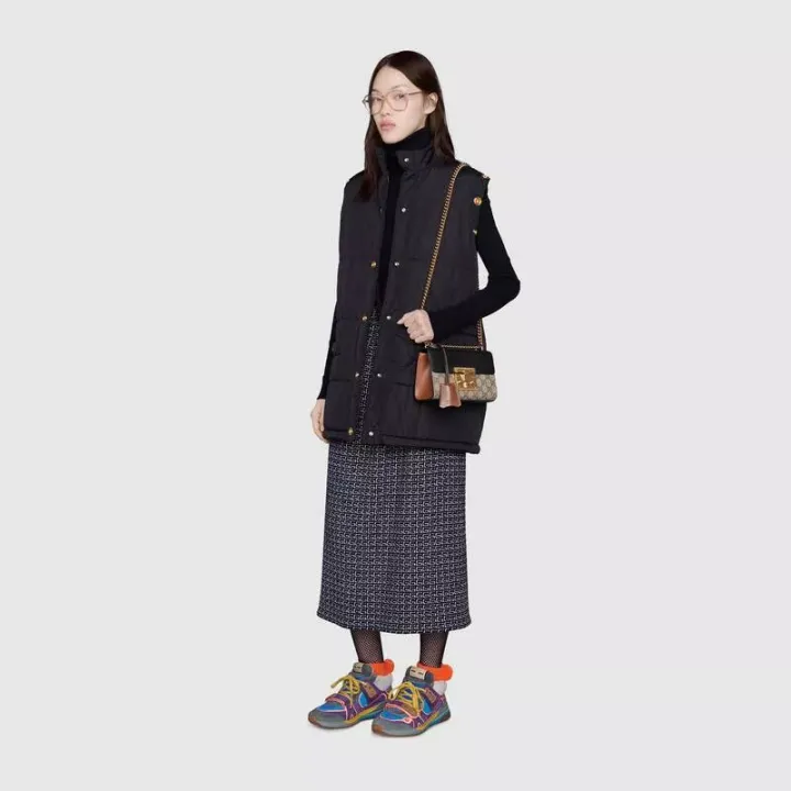 この小さなGGSupremeキャンバスショルダーバッグは、レザーフラップとキーロッククロージャーが特徴です。 スライディングチェーンバッグはさまざまな方法で着用でき、肩や手に持ち運ぶことができます。